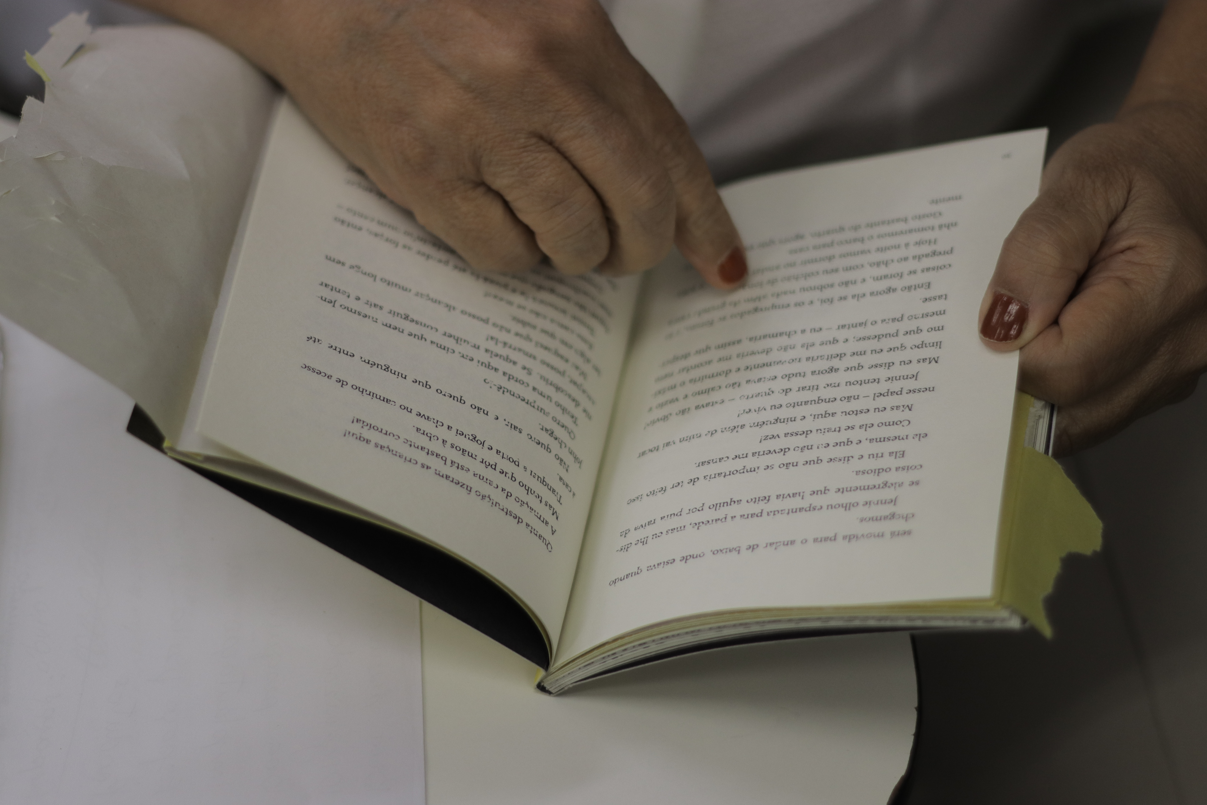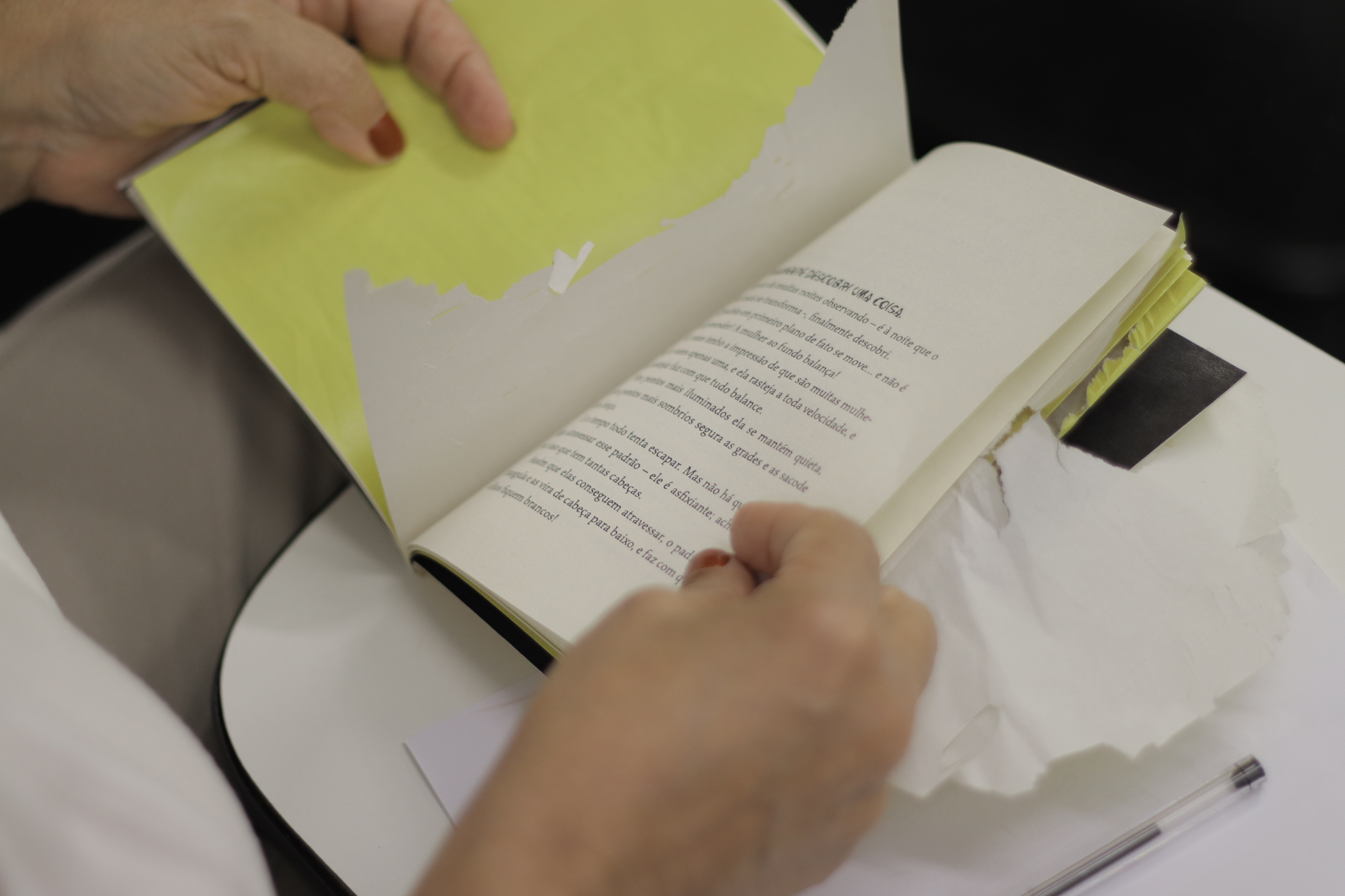 The book tells the story of a woman who is suffering and feels trapped inside a yellow wallpaper - a metaphor for being a woman and everything attached to it. The idea of this experiment was to simulate how the woman feels as she tears the wallpaper apart.
